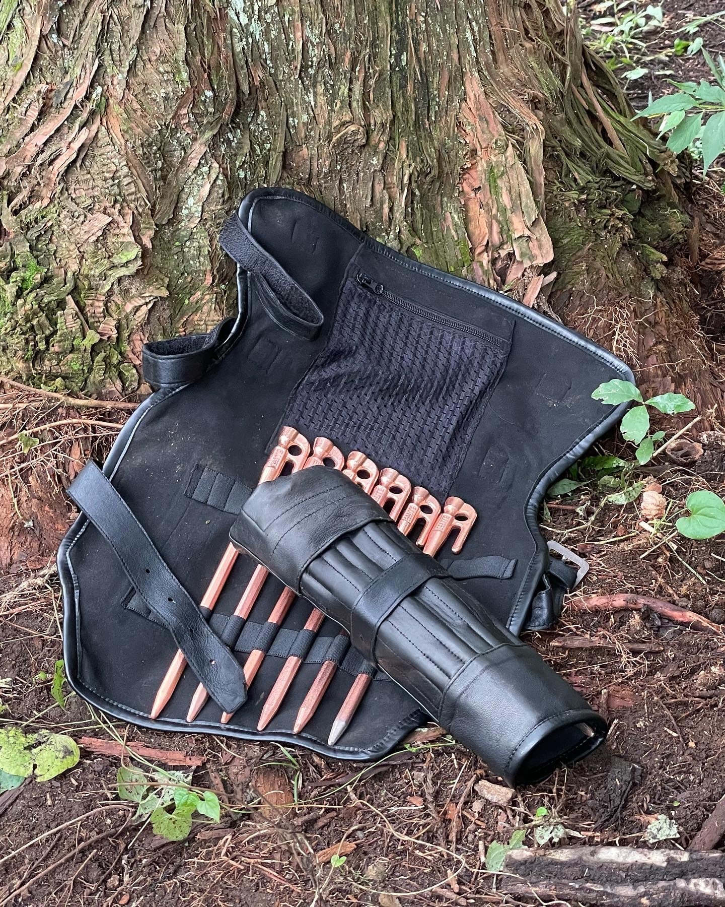 バトニングや薪割りの際、ペグを数本忍ばせて着用する事により斧や鉈のミスヒットから脚を保護出来大きな怪我から守ってくれます。