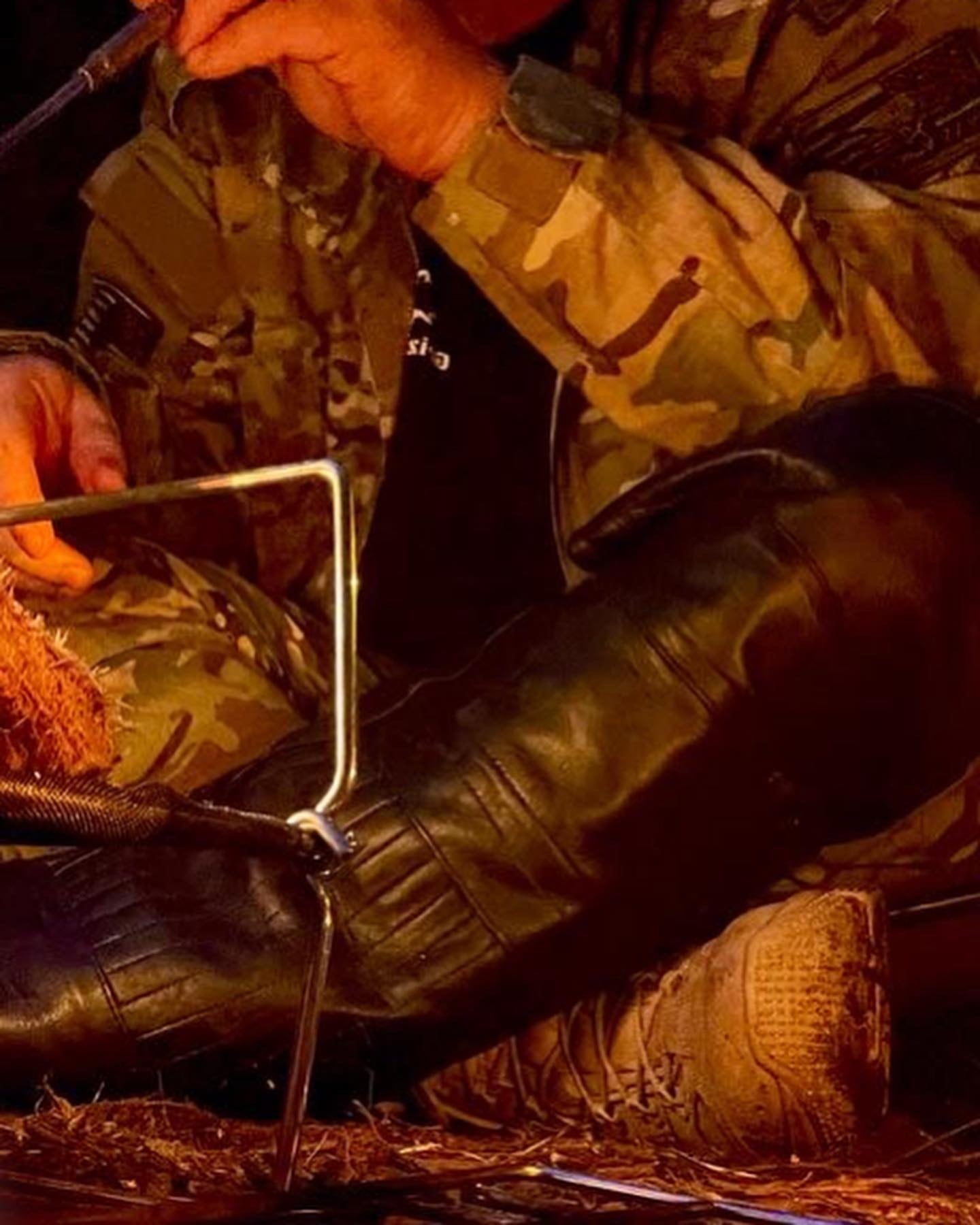 チャップスとして使う以外にも色々使い道があり、薪を集めて持ち運ぶ事も出来ます。焚き火を行う際に着用すると火の粉や熱から脚を守ります。